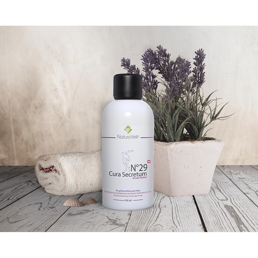 Deswegen hat NaturaVelit das Massageöl für Muskel- und Skelett CuraSecretum 29 entwickelt. Das Massageöl fördert das Wohlbefinden bei Muskelschmerzen und lockert spürbar bereits 15 Minuten nach dem Auftragen die verspannte Stelle.
